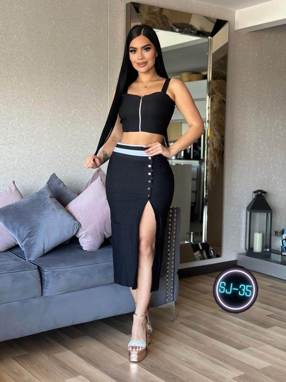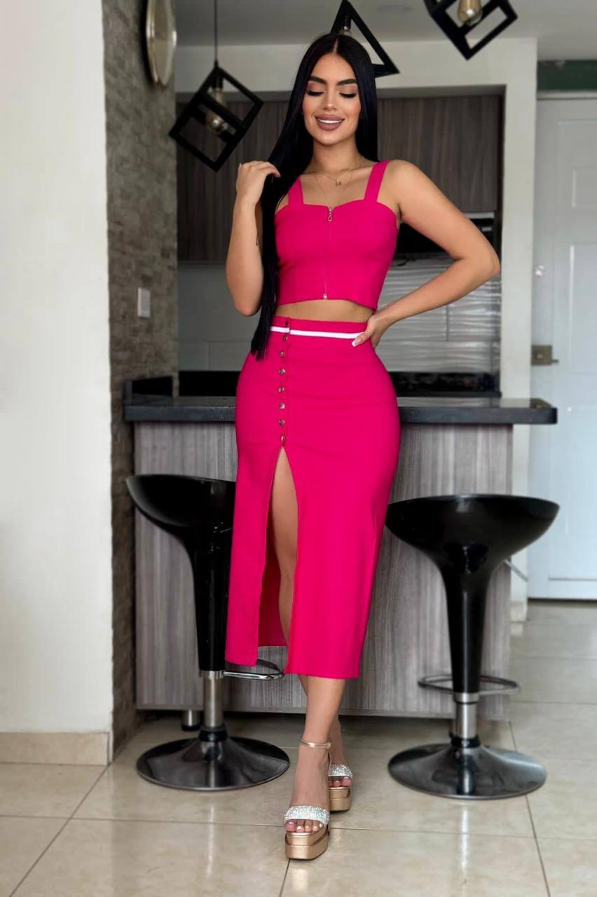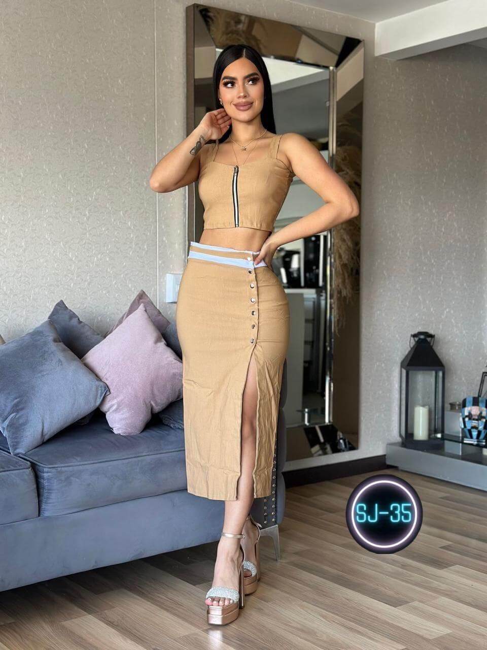 - Modelo: Conjunto falda y blusa elegante y moderno.